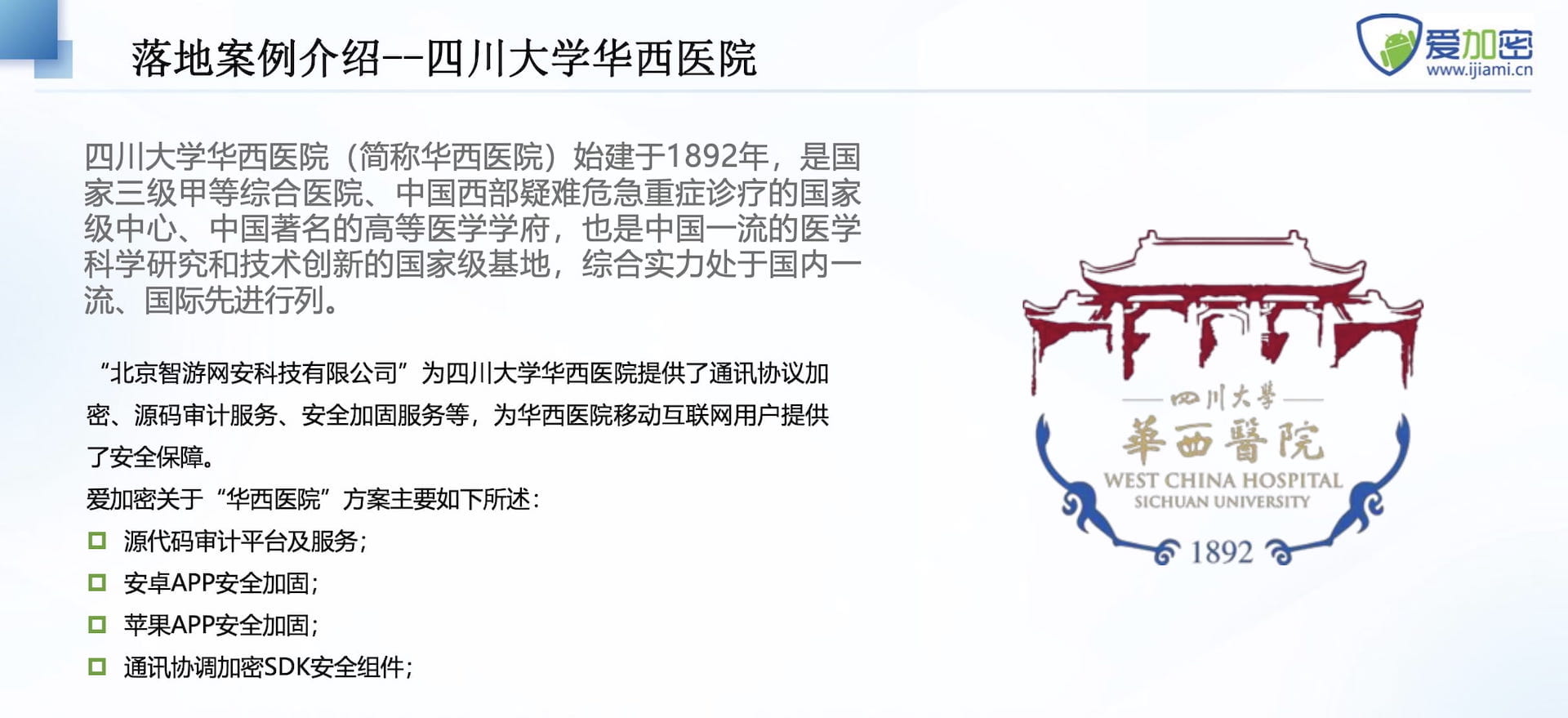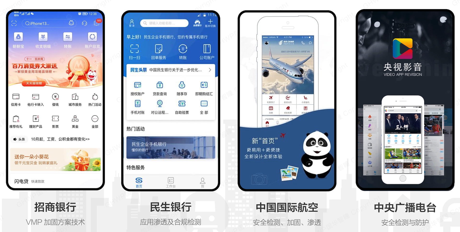 包括移动应用检测和加固,工控及工业产线的安全防护与监测,包括数据安全和信息安全。