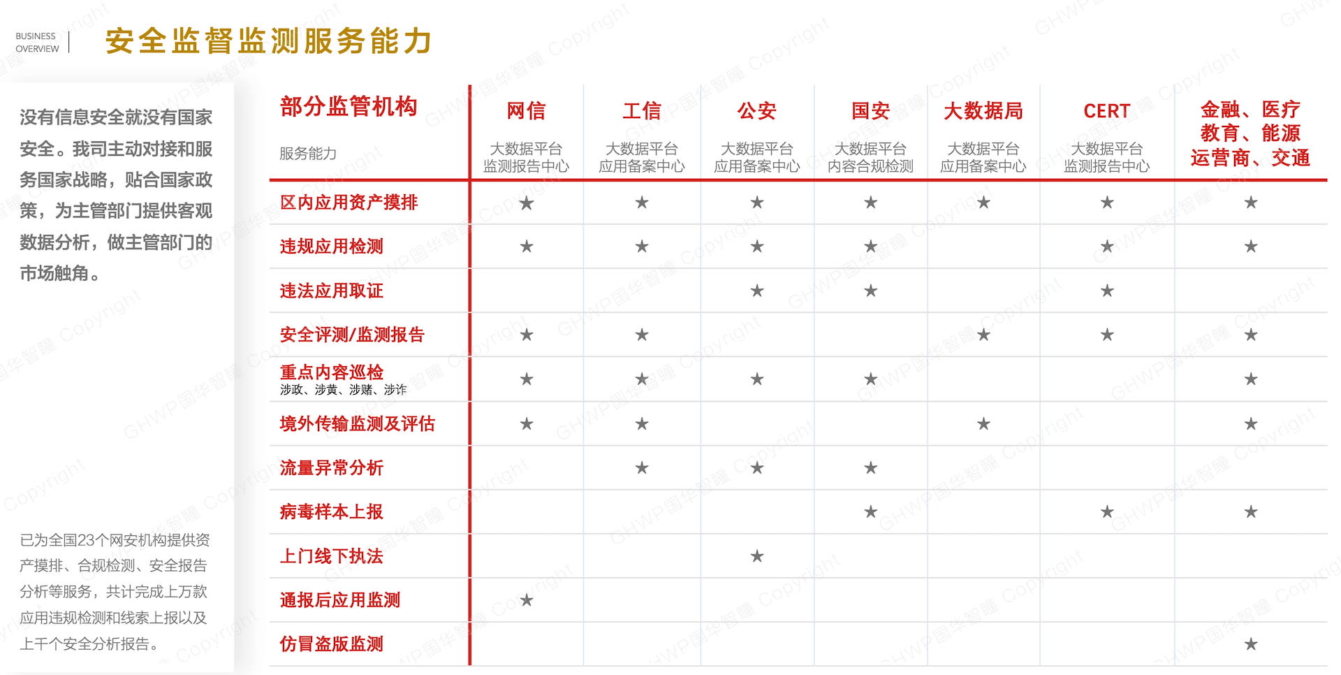 About us注:股东国华网安,创立于1981年,是深交所首家上市公司(股票代码000004),旗下分子公司21家。