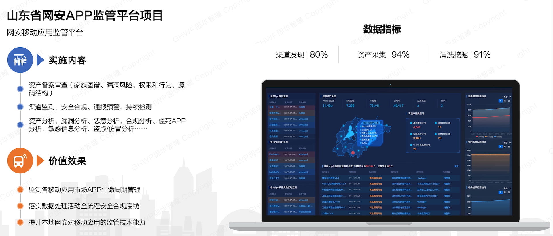 包括移动应用检测和加固,工控及工业产线的安全防护与监测,包括数据安全和信息安全。